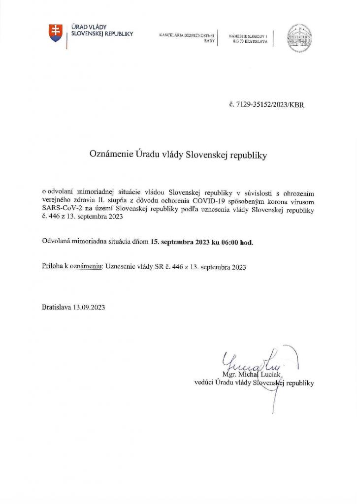 Odvolanie mimoriadnej situácie v súvislosti s ohrozením verejného zdravia II. stupňa z dôvodu ochodenia COVID-19.