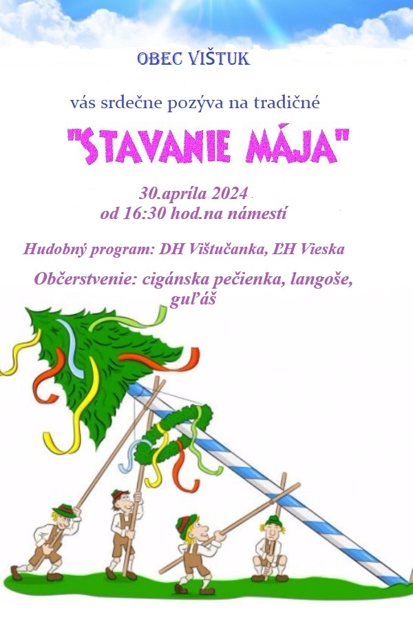 Pozývame Vás na stavanie Mája, v utorok 30.4.2024 od 16:30 hod. na námestí.