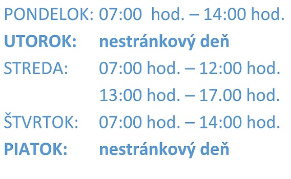 Oznamujeme občanom, že od 1. júla 2019 do 31. augusta 2019 bude zmena stránkových hodín na obecnom úrade: